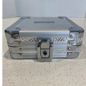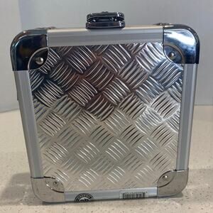 Keep your discs safe and organized with this brand new VAULTZ silver storage chest! This stylish and sturdy chest is perfect for storing CDs, DVDs, or other media. It comes with a key to keep your collection secure.
