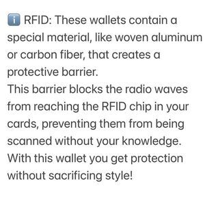 RFID: These wallets contain a special material, like woven aluminum or carbon fiber, that creates a protective barrier.