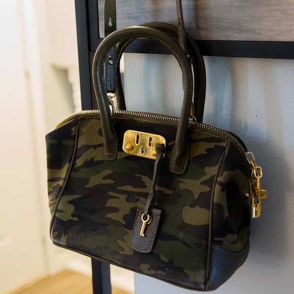 - VBH "Brera 34" camo-print canvas satchel bag.