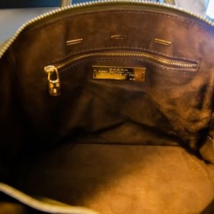 - Yellow golden hardware.