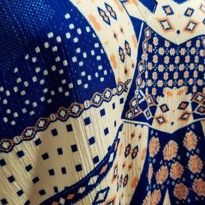 Long sleeve, comfortable fabric. V back adds a little sass to this. Blues, white, coral colors. Versatile in pairing with pants.