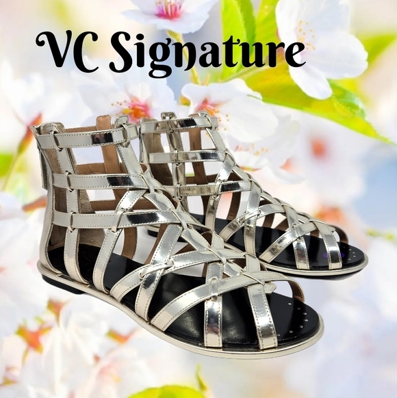 VC Signature Gladiator Silver Leather Womens Sandels Sz 8 Strappy Back Zip Women