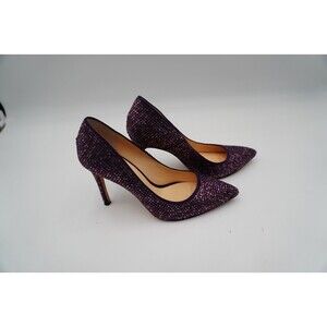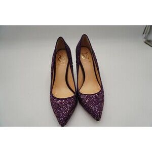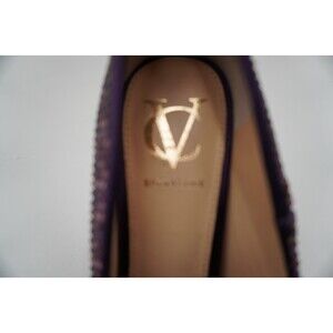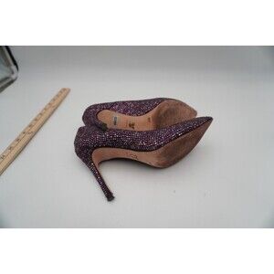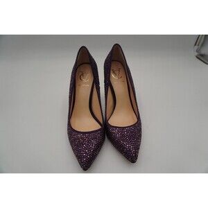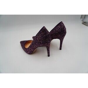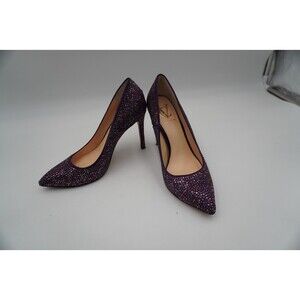 Pre-owned without tags or box. VC Signature Precious Purple Embellished Heels Size 7B By Vince Camuto. These stunning purple heels feature a dazzling glittery surface. Perfect for making a statement at any formal event. The classic pump silhouette with a pointed toe and a high heel adds elegance and sophistication to your ensemble. The interior is lightly padded for comfort, ensuring you can dance the night away in style.