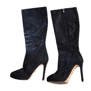 VC Vince Camuto Dressy Black Stiletto Boots with Rhinestones Size 8 1/2 Leather
