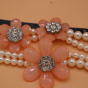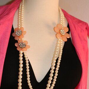 VCLM Faux Pearl Floral Rhinestones Fashion Necklace Double Strand 31"