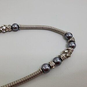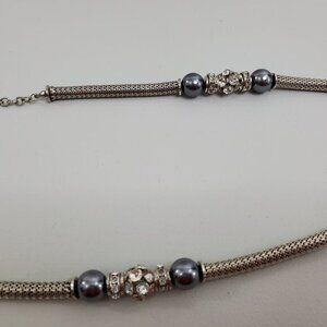 VCLM Necklace Gray‎ Faux Pearl Silver Tone Chain Lo