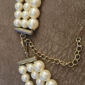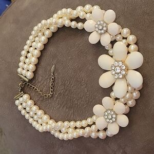 VCLM Retro 1960s Cream Floral Acrylic Glass Pearl Beaded Bridal Necklace