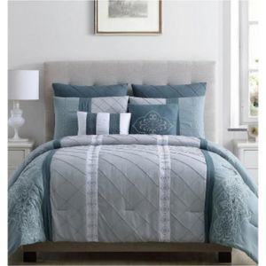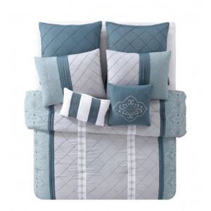 -7-Pc King Set includes: 1 comforter 104" W x 90" L, 2 King Shams 20x36, 2 Euro shams 26x26, 2 decorative pillows 12x18 and 18x18 -Features embroidered medallions, pintucks, and pleats -Polyester; Polyester fill -Machine washable