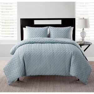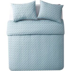 VCNY Home - Full/Queen Comforter Set, Textured Basketweave Bedding with Matching Sham, Lightweight, Dorm Essentials (Nina Blue, Full/Queen) Add soft texture and unique dimension to your bedroom dcor with the VCNY Home Nina Embossed Basket weave Comforter Set, which features an embossed basket weave pattern in your choice of a variety of solid colors. Irresistibly soft yet durable, this solid bed set is made of 100% microfiber fabric and is machine washable. Each comforter set includes a comforter and pillow shams for a coordinated look.