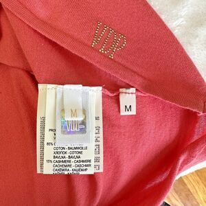 The VDP Collection Coral Women's Rhinestone Scoop Neck Short Sleeve Sweater Top in size M is a stylish and versatile garment perfect for various occasions. Made from a luxurious blend of cashmere and cotton, this tight-knit top features a classic pullover style with a fitted sleeve and a flattering scoop neck. The vibrant pink color and rhinestone accents add a touch of glamor, making it ideal for parties, cocktails, casual outings, or even workwear or business attire. With its timeless preppy style and all-season appeal, this sweater is a must-have addition to any woman's wardrobe.