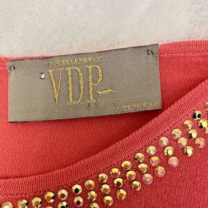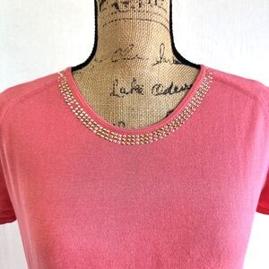 VDP Collection Coral Women's Rhinestone Scoop Neck Short Sleeve Sweater Top Sz M