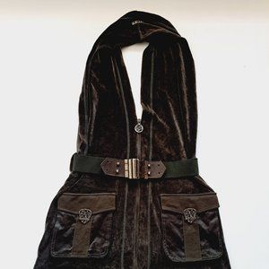 VDP Italian Dark Green Velvet Open back Dress Size 42