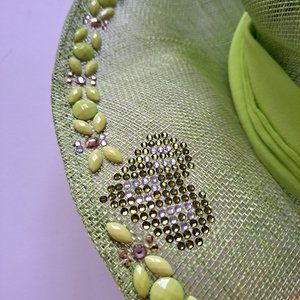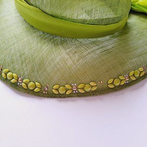 VDP Women's Italian Straw Silk Summer Beach Green Hat