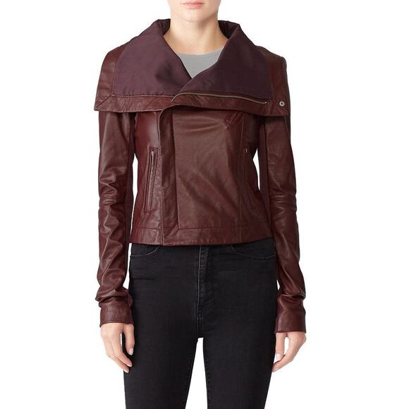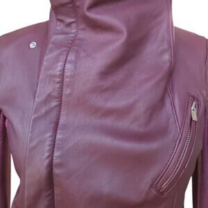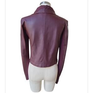 VEDA 100% Lamb Leather Cropped Moto Jacket Size M Burgundy Edgy Indie Rebel Chic