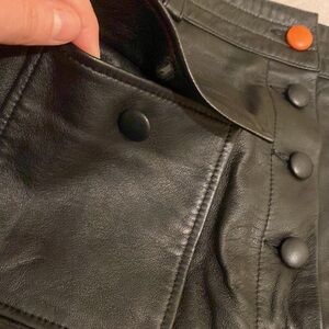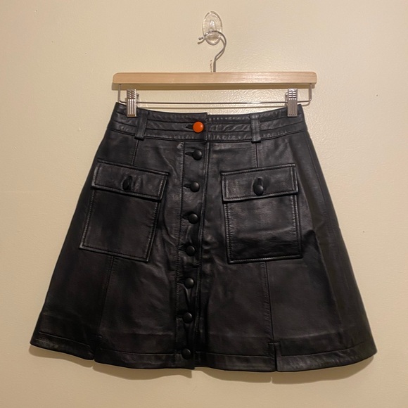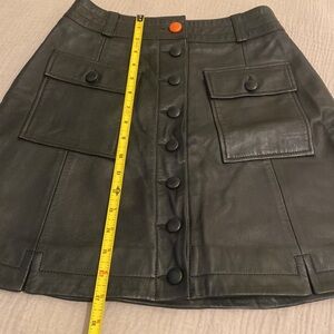 VEDA Black Leather Button-Up Mini Skirt. Size S-M