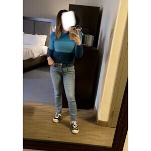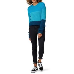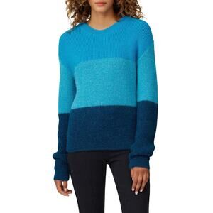 VEDA Blue Ombre Striped 100% Alpaca Wool Long Sleeve Ranch Road Sweater sz M
