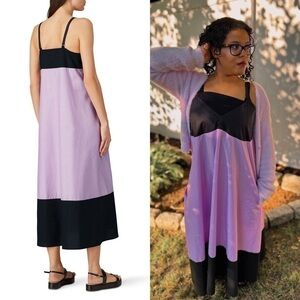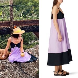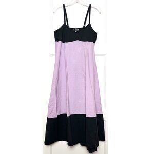 VEDA Lavender Colorblock Stripe Cotton Sleeveless V-Neck Babydoll Midi Dress S