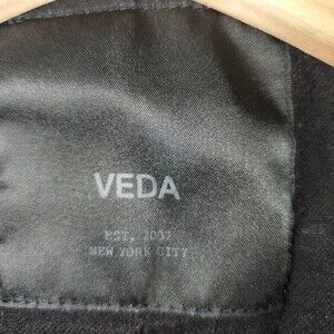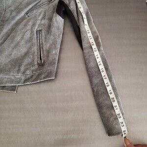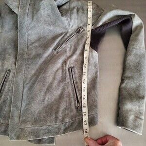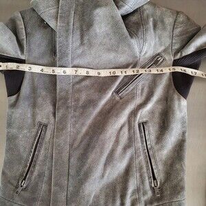 VEDA NYC Gray Black Suede Leather Funnel Neck Crop Jacket Small
