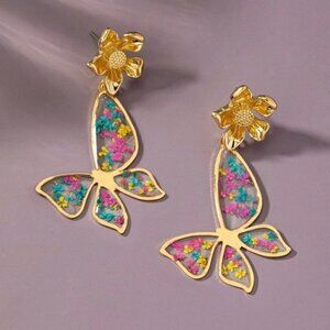 VEE PRESSED FLOWER BUTTERFLY EARRINGS