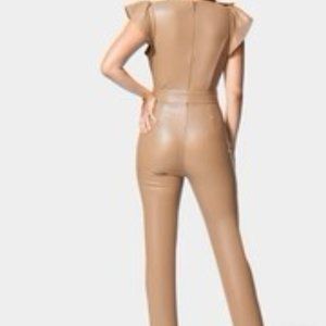 VEGAN LEATHER RUFFLE JUMPSUIT CAMEL SIZE MEDIUM & LARGE NWT