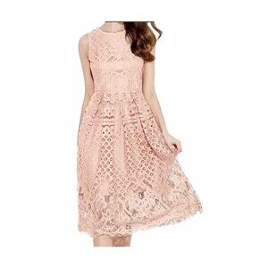 VEIISAR Pink Sleeveless Lace Elegant Cocktail Party Dress Size Small Lined