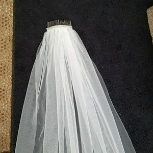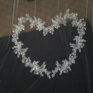 Ivory Cathedral veil with lace. This veil had clear sequins on the lace. Veil comes with a comb.