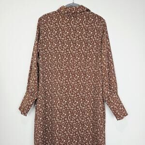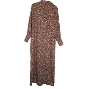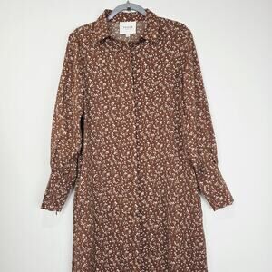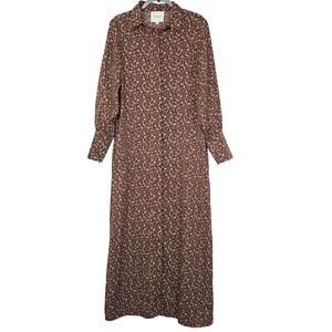 VEILED Maxi Dress Brown White Floral Ditzy Long Sleeve Shirtdress, Size Medium