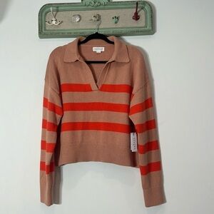VELVET BY GRAHAM & SPENCER Women's Lucie Cotton Cashmere Striped Polo Sweater XL