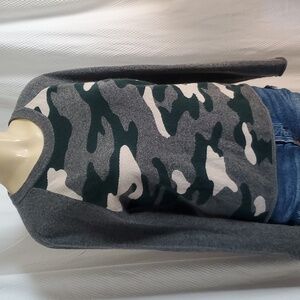 VELVET BY Graham&Spencer 100%Cashmere Camouflage Sweater Gray Green White Size M
