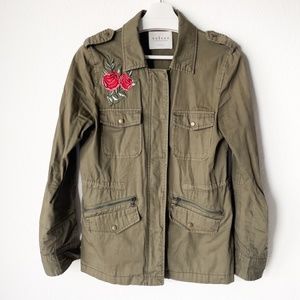 Ruby LIGHT-WEIGHT Army Jacket with rose embroidery on front and the back of this stylish and timeless jacket