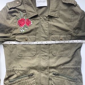 VELVET By Graham & Spencer 100% Cotton Utility Jacket Green w. Rose Embroidery S