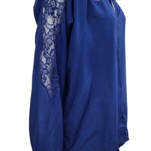 VELVET By Graham & Spencer Dark Blue Lace Long Sleeves Top.