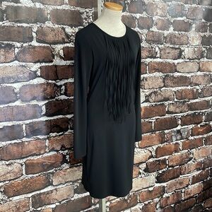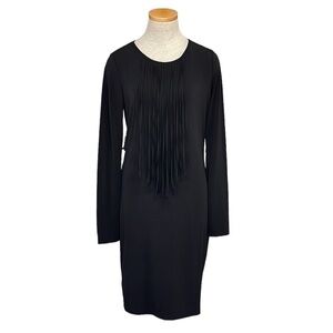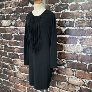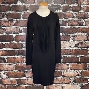 VELVET Dress Black Fringe Long Sleeves Round Neck Large