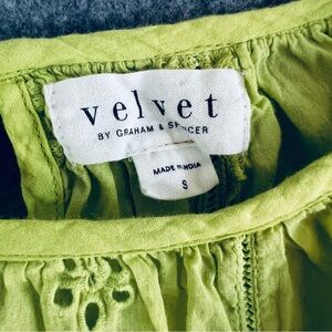 VELVET Eyelet Women's Yara Cotton Blouse Green Feminine Boho Vibes Size Small