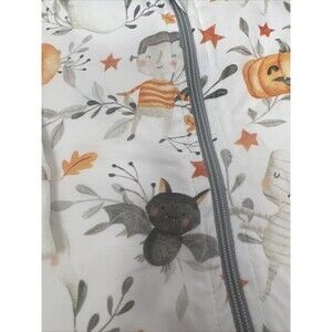 This Velvet Fawn Boutique Full Zip Sleeper is the perfect addition to your little one's night time outfits. With a spooky Halloween-themed design featuring a pumpkins, bats and ghosts, this sleeper is sure to delight your baby. This comes from a smoke free home. Stains on bottom of sleeves per photos. All else in excellent condition