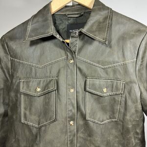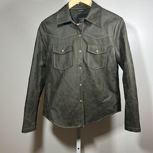 VELVET HEART Women's Vegan Leather Button-Up Shacket Green Size Extra Small