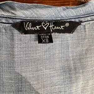 VELVET HEART XS Shirtdress Blue Chambray Shift V-Neck Soft Tencel Lightweight