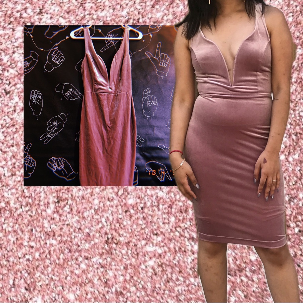 🥀 VELVET ROSE DRESS 🥀 Velvet style dress, body con. Used ONCE. Very good condition, front has wires to hold the girls up!