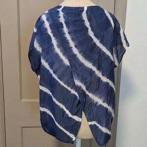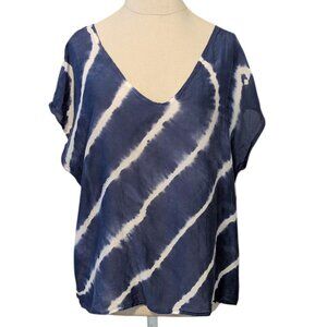 VELVET Silk Abila Tie Dye Marks & Spencer Open Cross Back Boho Cap Sleeve Coastal Grandma Navy Blue Bohemian Flowey Festival Hippie Lagenlook Anthropologie Free People