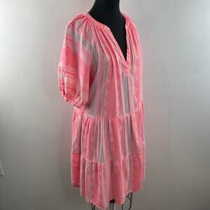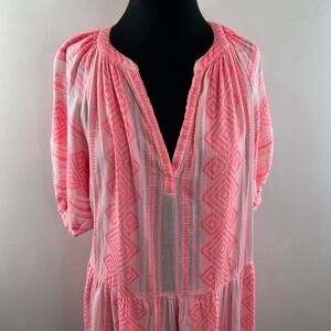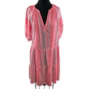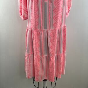 VELVET Sophie Pink Jacquard Dress Cotton Sophie Puffed Sleeve Pullover Large L