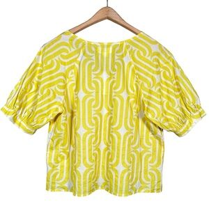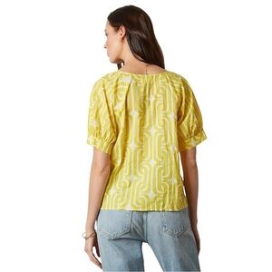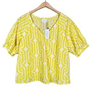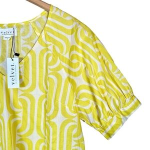 NWT women’s size S VELVET by GHARAM & SPENCER Printed V-Neck Blouse in yellow / white