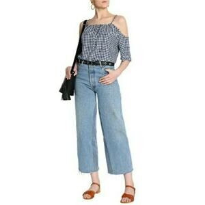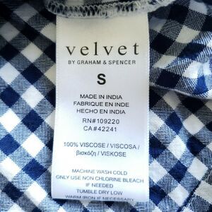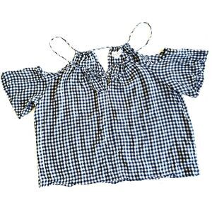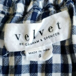 VELVET by Graham & Spencer Nedra cold shoulder gingham top blouse admiral blue S