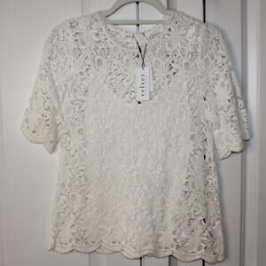 VELVET by Graham and Spencer -NWT $220- Kaylee Floral Lace Top White | XS