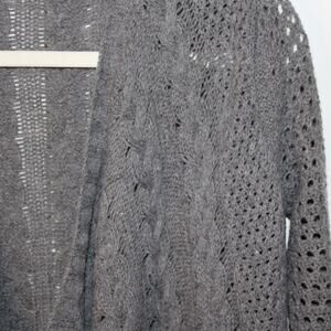 VELVET by Graham and Spencer Wool Cashmere Open Knit Gray Cardigan | PS