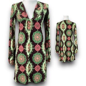 VELVET TORCH Velvet Torch Off The Shoulder Long Sleeve Mini Dress In Pink Green Brown Women’s Size Small