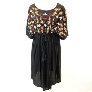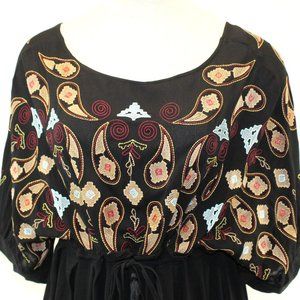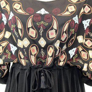 VELZERA Paisley Black Midi Tiered Dress 3XL