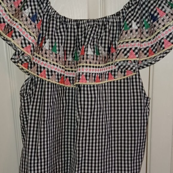 Cute black and white off the shoulder ruffled with embroidery.