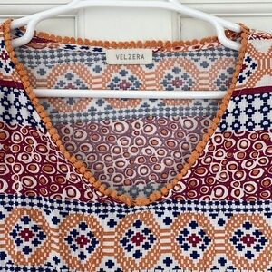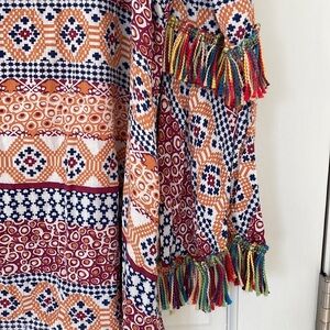 VELZERA tunic dress size XL red blue yellow beach coverup fringe