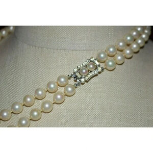 VENDOME Faux Glass Pearl Clear Rhinestone Wedding Dual Strand Necklace Vintage