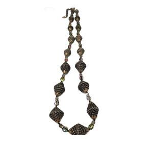 VENDOME Signed Chunky Textured Bicone Beaded Aurora Borealis Choker Necklace
